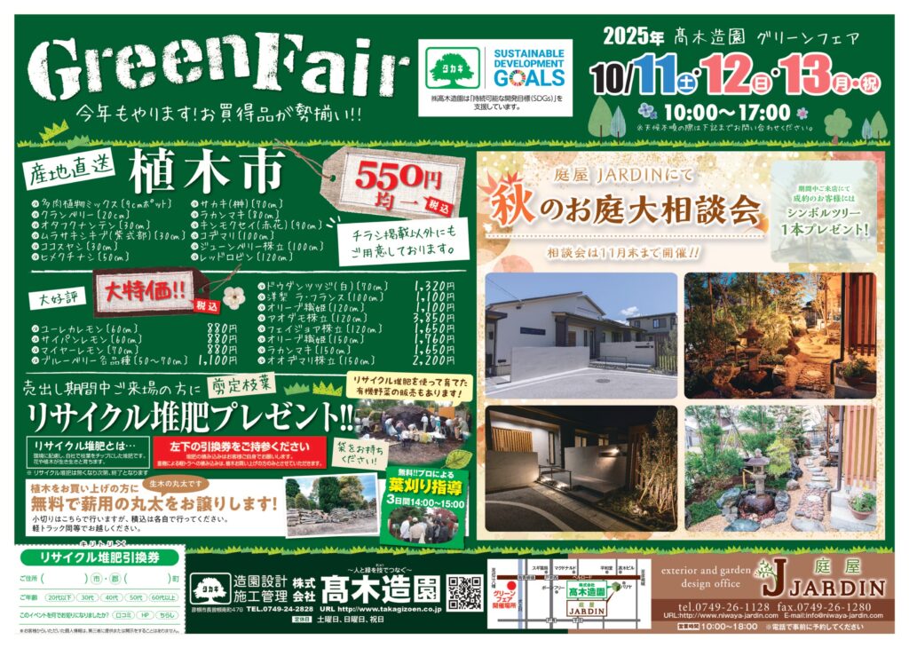 今年も秋のグリーンフェアを、10月11日(土)、12日(日)、13日(月祝)の三日間開催します!